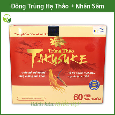 03 Boxs -Đông trùng hạ thảo - Bồi bồ sức khỏe, hết suy nhược cơ thể - Hộp Trùng thảo TAKUSUKE 60 viên - chuẩn GMP Bộ Y tế
