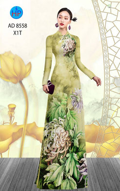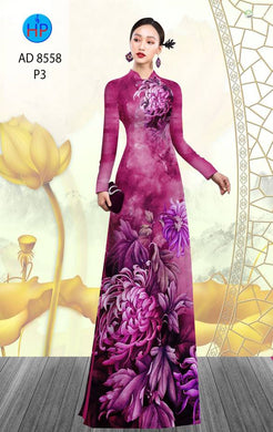 1 Set - Ao Dai - Traditional Vietnamese Long Dress Collections with Pants - Silk 3D - All Size - Hoa Cuc