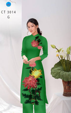 1 Set - Ao Dai - Traditional Vietnamese Long Dress Collections with Pants - Silk 3D - All Size - Hoa Cuc
