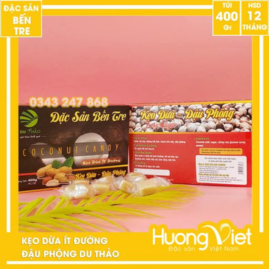 2 Packs* 400g Kẹo Dừa Đậu Phộng Ít Đường Du Thảo