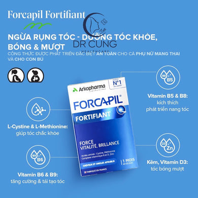 Bác Sĩ Cung Viên Uống Giảm Rụng Tóc FORCAPIL FORTIFIANT Arkopharma - Giúp Mọc Tóc, Rụng Tóc Sau Sinh, Kẽm (60V)