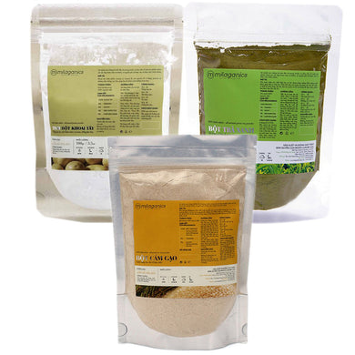 Combo 3 Gói Bột Trà Xanh, Cám Gạo Và Khoai Tây Thiên Nhiên Milaganics (100g/gói)