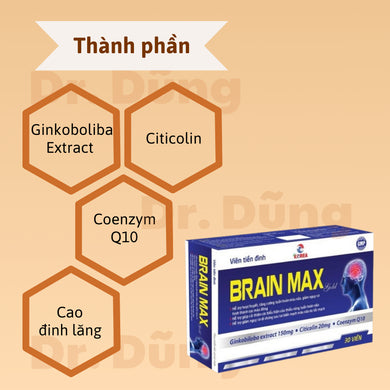 02 Boxes - Viên uống bổ não Brain Max hỗ trợ hoạt huyết dưỡng não, hoạt huyết thông mạch, hoạt huyết tiền đình, hoạt huyết an thần