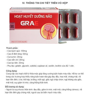 02 Boxs - hoạt huyết dưỡng não trapharcoạn tiền đình, mất ngủ, giấc ngủ chập chờn, suy giảm trí nhớ. Hoạt huyết dưỡng não GRAE, hộp 30 viên (hộp màu đỏ)