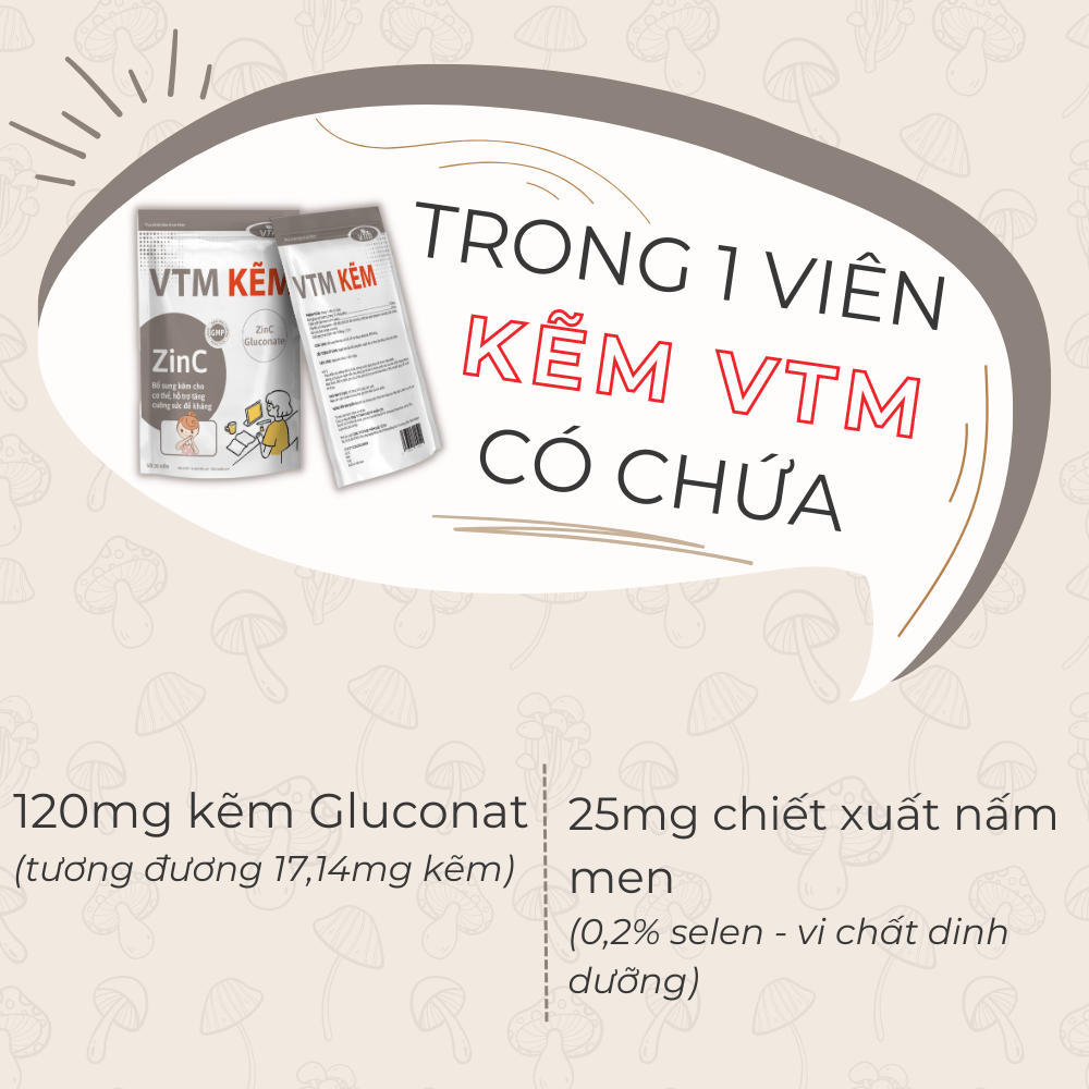 Viên kẽm VTM là thực phẩm chức năng đáp ứng đầy đủ các tiêu chuẩn chất lượng với công dụng chính là bổ sung hữu hiệu hàm lượng kẽm cần thiết cho cơ thể. Hàm lượng kẽm này sẽ tham gia vào quá trình điều chỉnh tình trạng sức khỏe, trở thành nhân tố không thể thiếu cho các hoạt động sống của cơ thể.